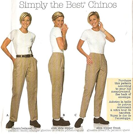 The Spanish called them pantalones chinos or Chinese pants. I have made pants from this pattern 3 times now and they make a great pair of pants. Chino Pants Relaxed or Slim Fit Sewing Pattern - Simplicity 7590 - Sizes 4-6-8 Waist 22-23-24 - Uncut.